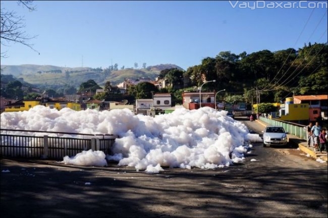 Некоторые улицы бразильского города Сан-Паулу недавно наполнились большими клубами густой пены, которую выбрасывает река Тиете...